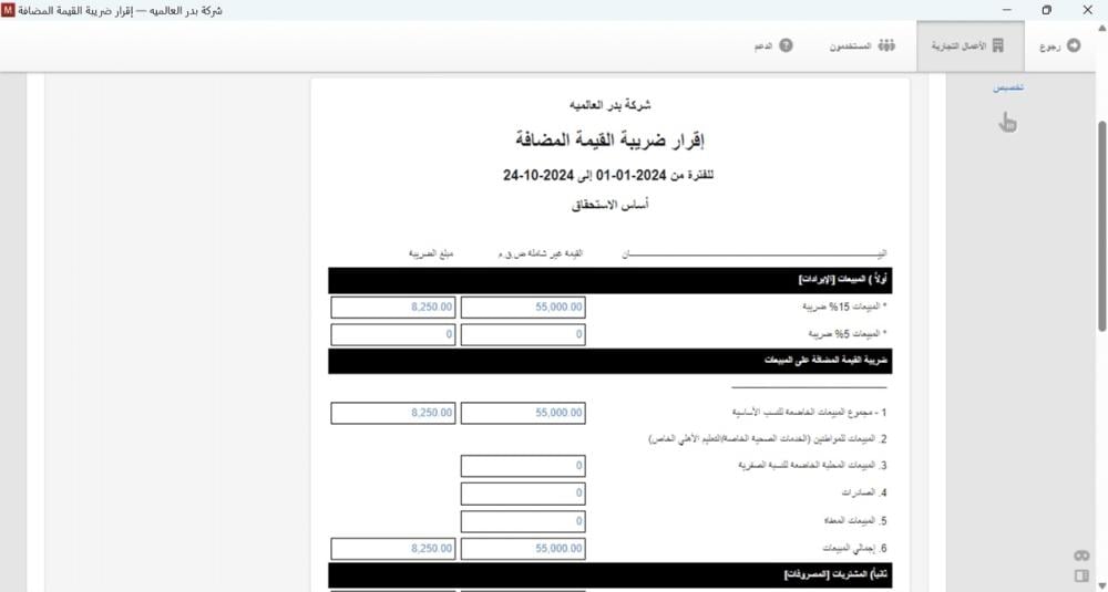 🔹 إعداد إقرار ضريبة القيمة المضافة (VAT) بدقة تامة.
