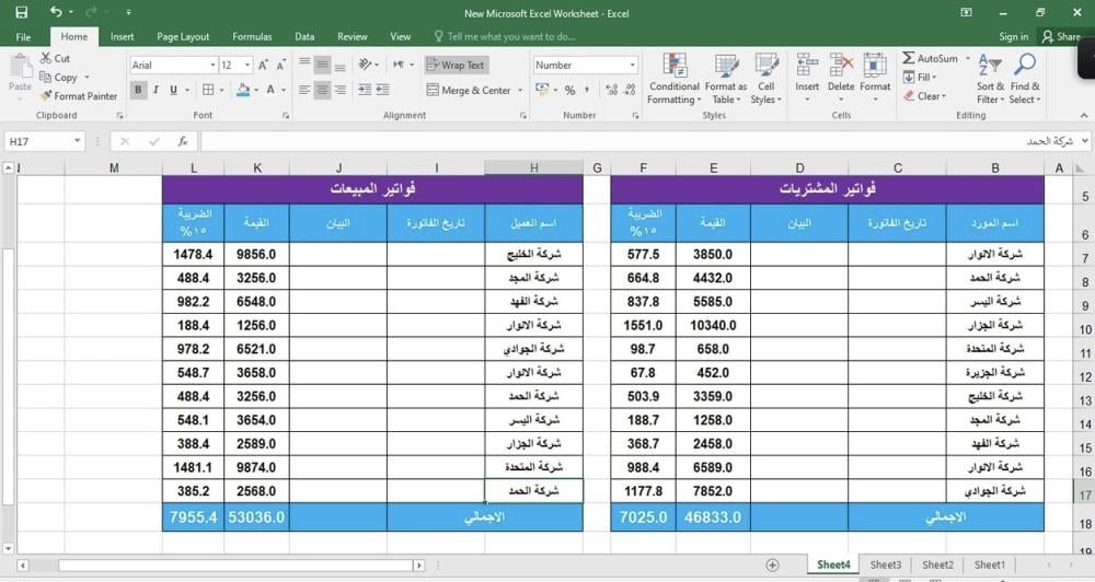 - عمل ملف اكسل بالمبيعات و المشتريات الخاضعة لضريبة القيمة المضافة